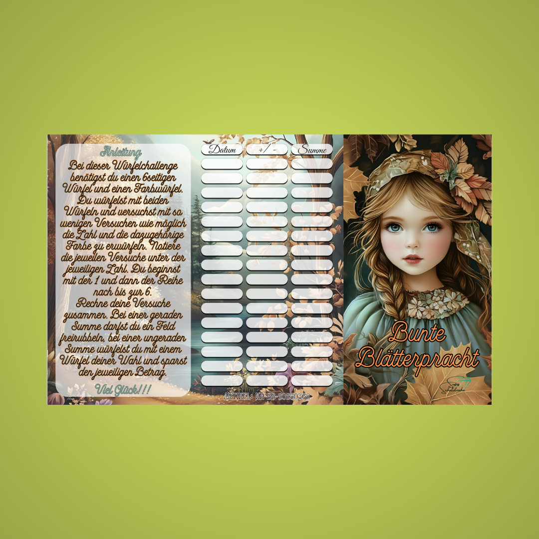 Bunte Blätterpracht ist eine 6seitige Klappkarte. Unter den Feldern befinden sich Beträge zwischen 1€ und 9€.