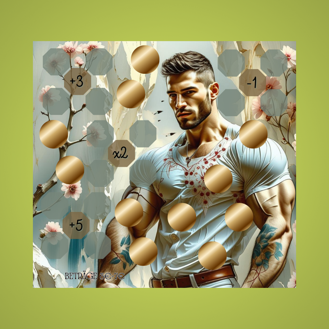 Hottie in my Life ist eine 4seitige Klappkarte für alle Rubbel- und Würfelfreunde. Unter den Feldern befinden sich Beträge zwischen 3€ und 7€