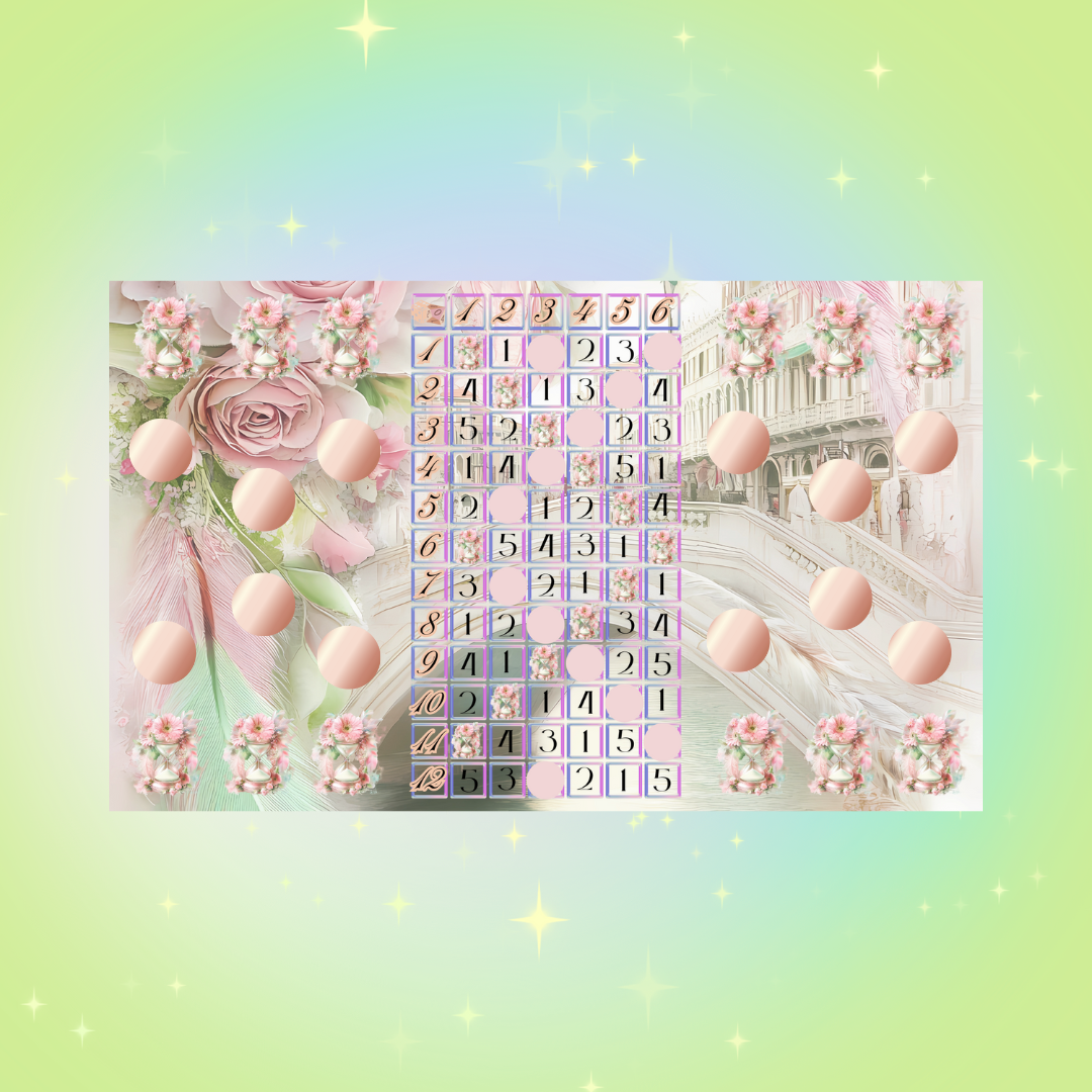 Hier bekommt Ihr ein Bingo im pastelligen Karneval In Venedig Design. Diese Klappkarte ist passend für einen A6 Binder/ Hülle.