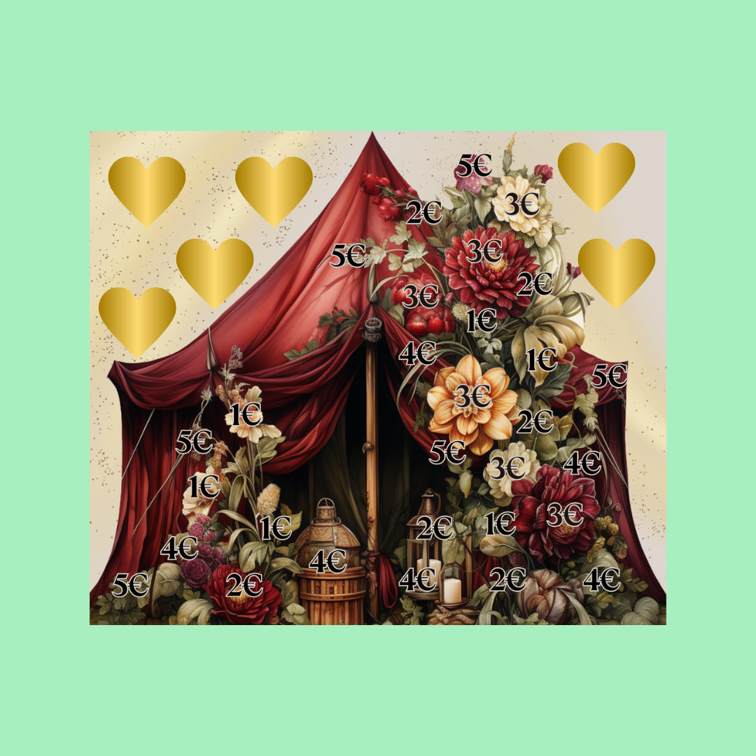 Oriental World ist eine A7 Klappkarte mit verschiedenen Aktionen: Abstreichbeträge und Rubbelfelder.
