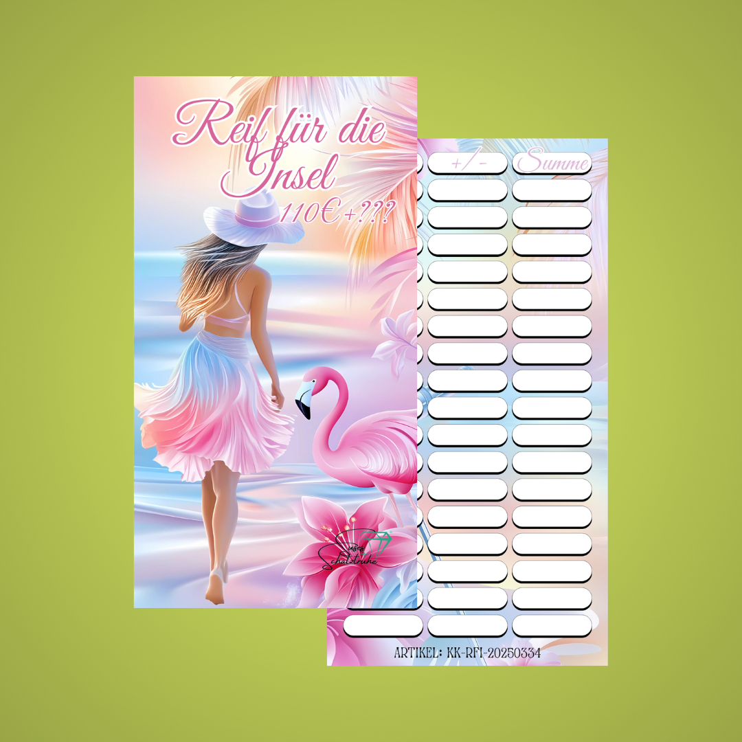 Reif für die Insel ist eine 4seitige Klappkarte mit einem Spar-Weg und freien Rubbelfeldern. Unter den Feldern befinden sich Beträge zwischen 1€-5€!