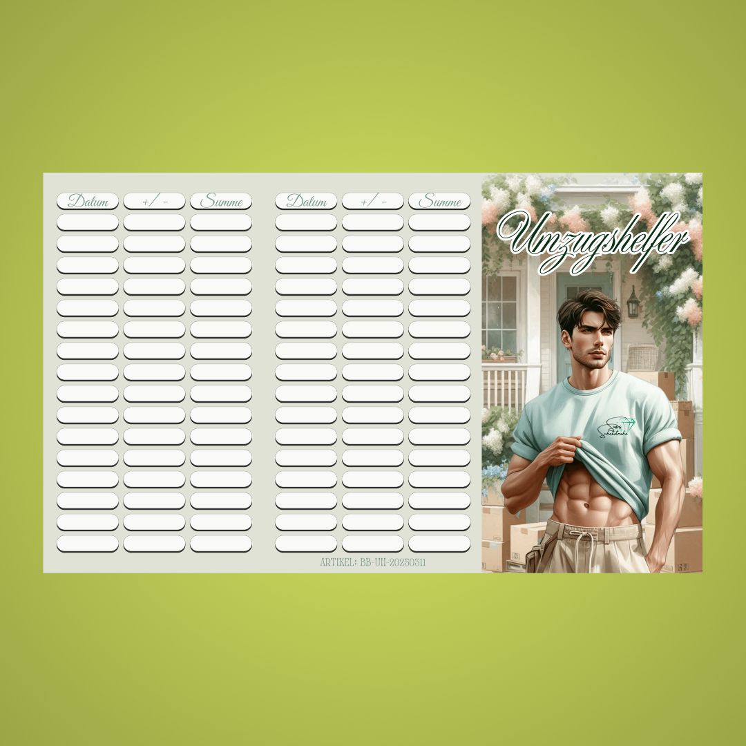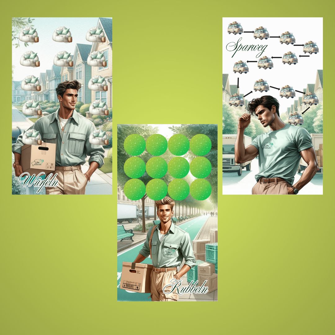Umzugshelfer ist eine Klappkarte mit einem Big Bingo. Sie beinhaltet verschiedene Aktionen.