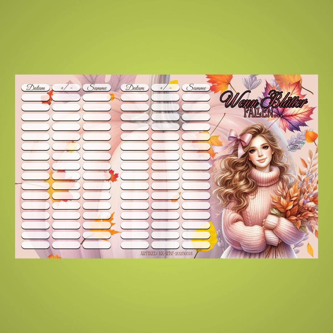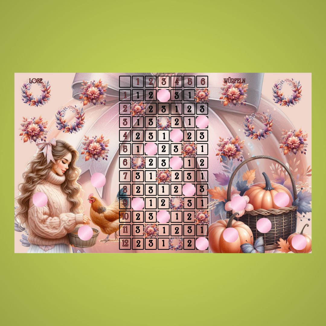 Wenn Blätter fallen ist eine Klappkarte mit einem 6x10 Bingo und verschiedene Aktionen.