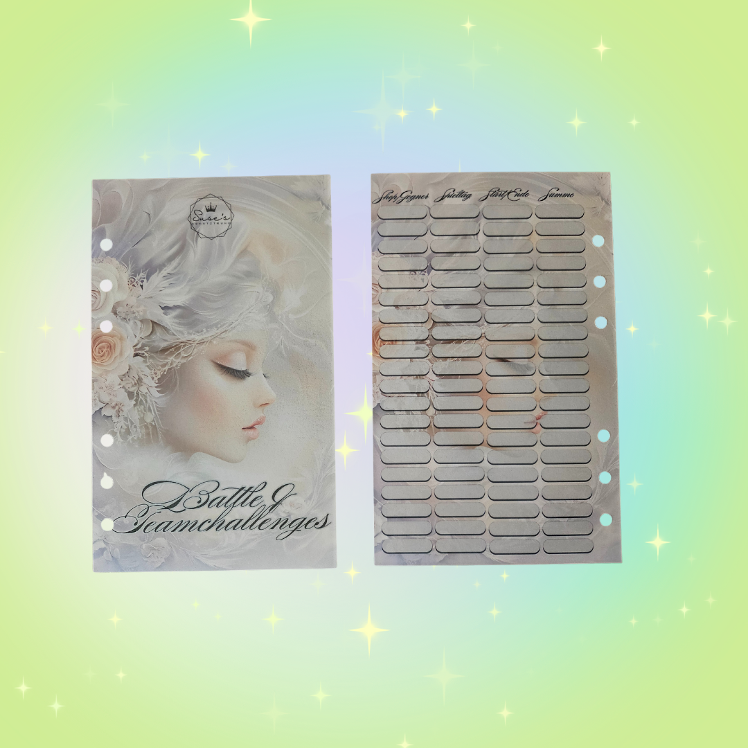 Hier findet Ihr ein Register für eure Battle & Teamchallenges. Das Register besteht aus einem Deckblatt mit einer Übersicht auf der Rückseite. Des weiteren kommen noch sieben Registereinlagen mit allen Wochentagen dazu. Das Register ist matt foliert somit immer wieder zu beschriften.